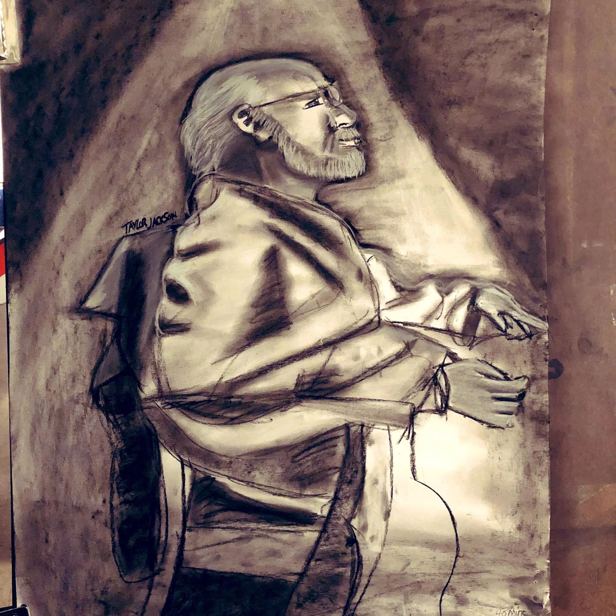Study of my instructor Sergius Kovalchuk. Charcoal on paper. 2019.